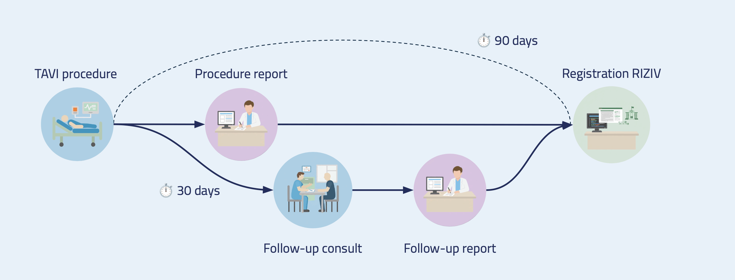 Belgian hospitals performing TAVI procedures face a regulatory challenge that directly impacts both clinical workflows and reimbursement. Every transcatheter aortic valve implantation (TAVI) must be registered with RIZIV/INAMI within strict deadlines: 90 days for the procedure report and follow-up documentation. Miss these windows, and the hospital risks losing reimbursement exceeding €12,060 per procedure.